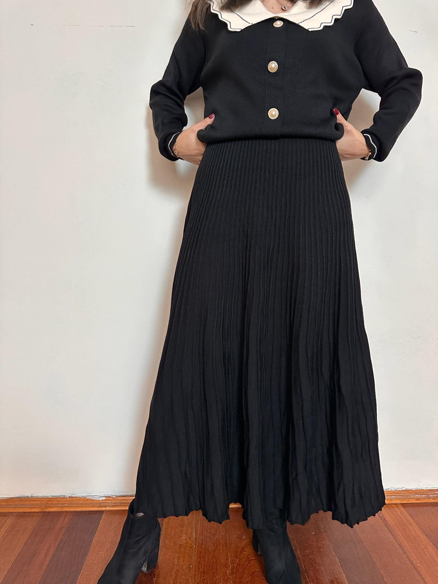 🖤 Pliseli uzun etek, dökümlü yapısı sayesinde hem feminen hem de modern bir duruş sunar.