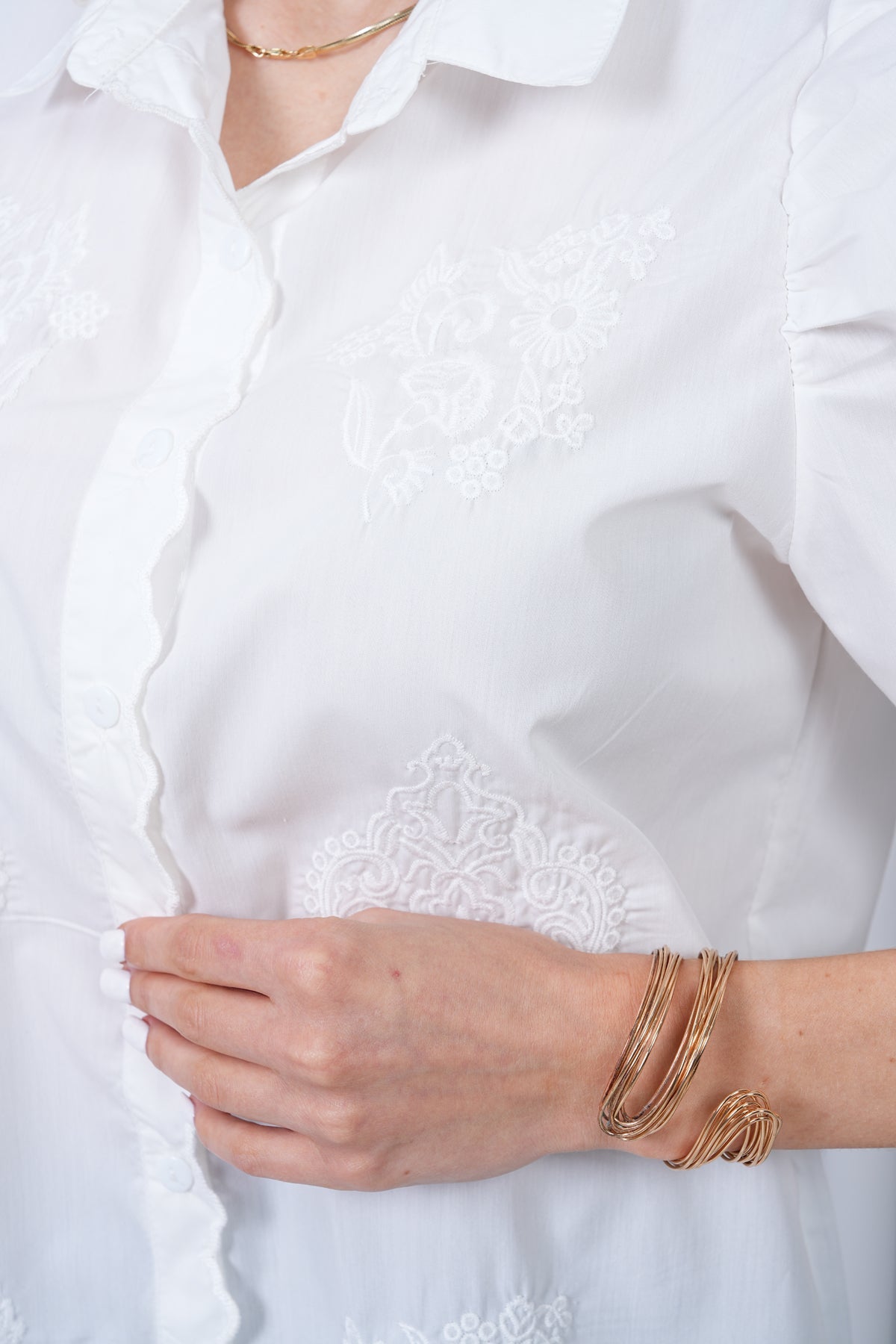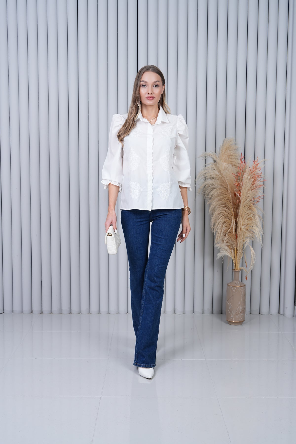 - Feminen ve zarif bir görünüm sunan Beyaz Dantel Detaylı Balon Kol Gömlek, nakış detayları ile romantik bir stil yansıtır.