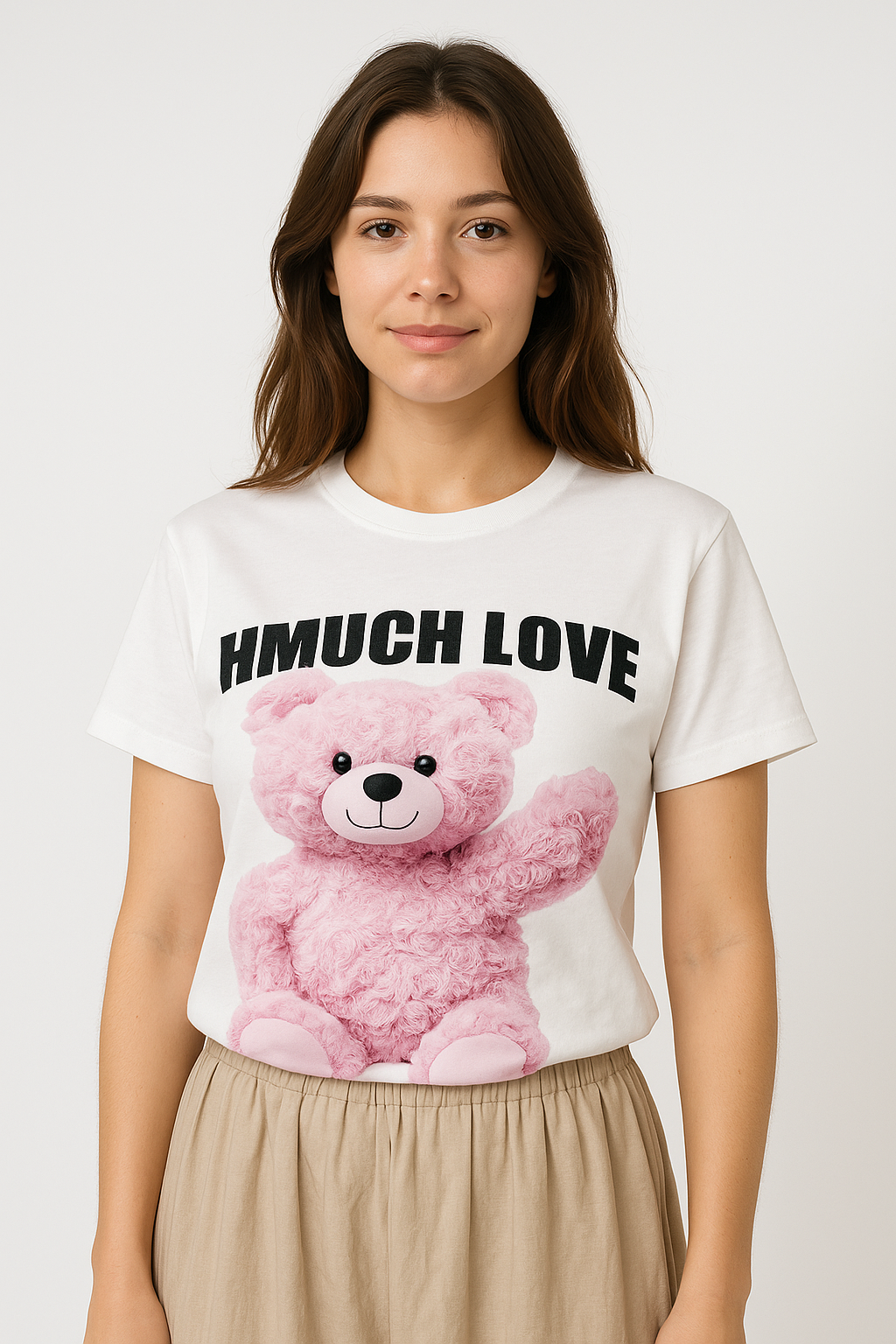 - 🧸%100 Pamuk kumaştan üretilen bu Beyaz Oversize Baskılı Kadın Tişört, ön kısmındaki tatlı pembe ayıcık baskısı ve yazı detayıyla günlük kombinlere eğlenceli bir hava katıyor.