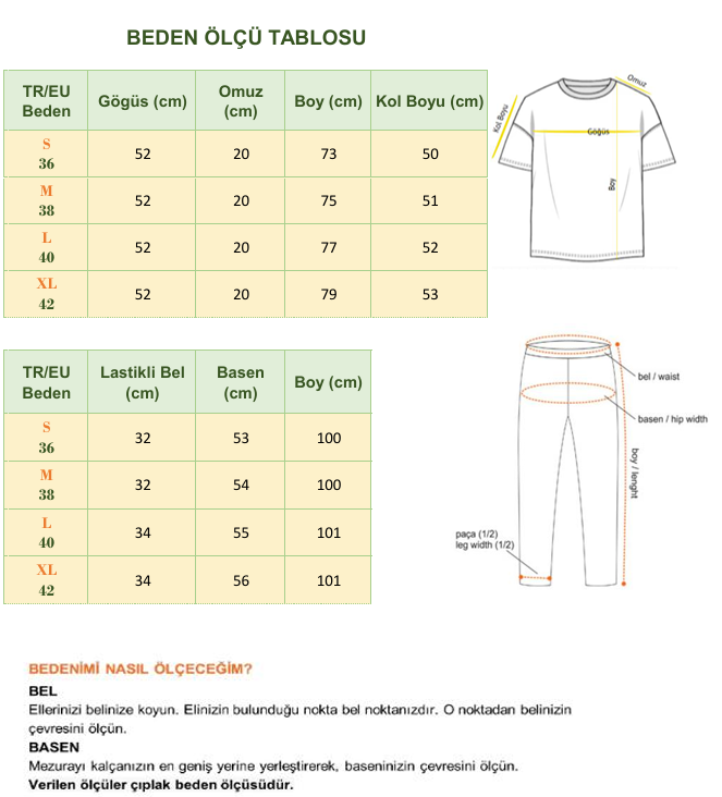 - Gömlek önden düğmeli ve pantolon beli lastiklidir