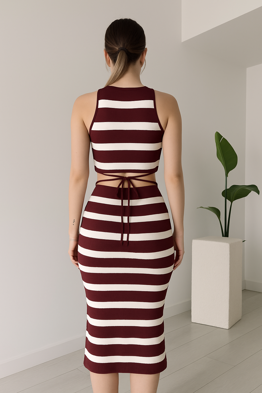 - Zarif çizgili deseni ve modern kesimiyle dikkat çeken bu triko takım, hem şıklığı hem de rahatlığı bir arada sunuyor.