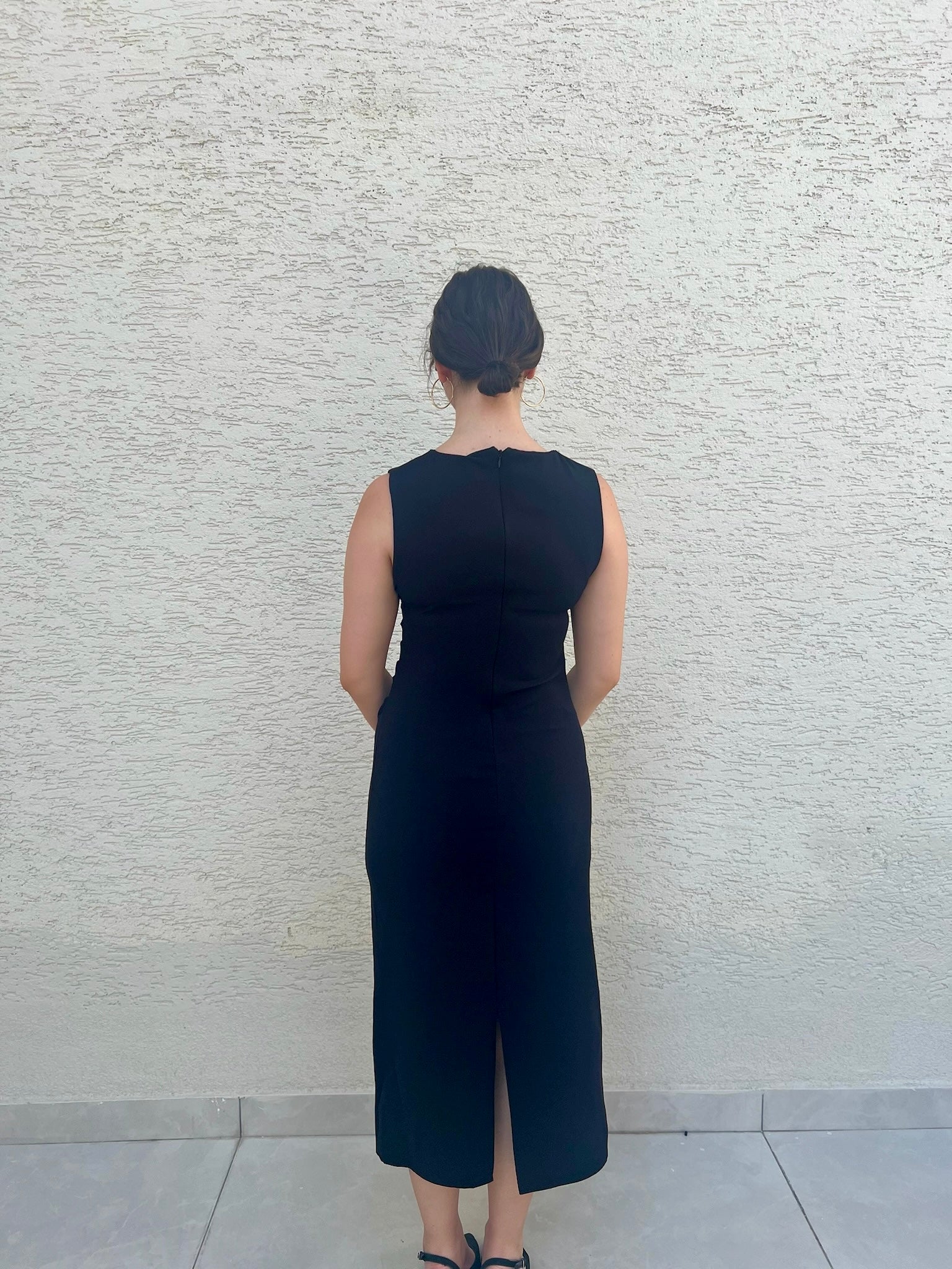 🖤Şıklığı zarafetle buluşturan Drapeli Midi Kolsuz Elbise, dokuma kumaşı sayesinde hem formunu korur hem de kaliteli bir duruş sunar.