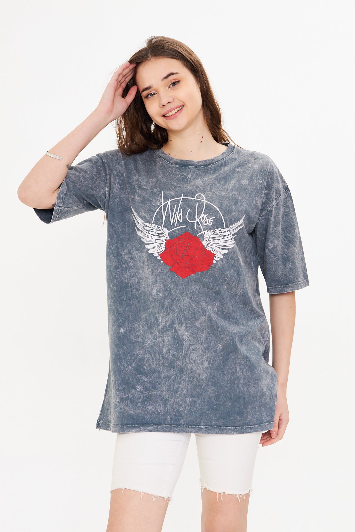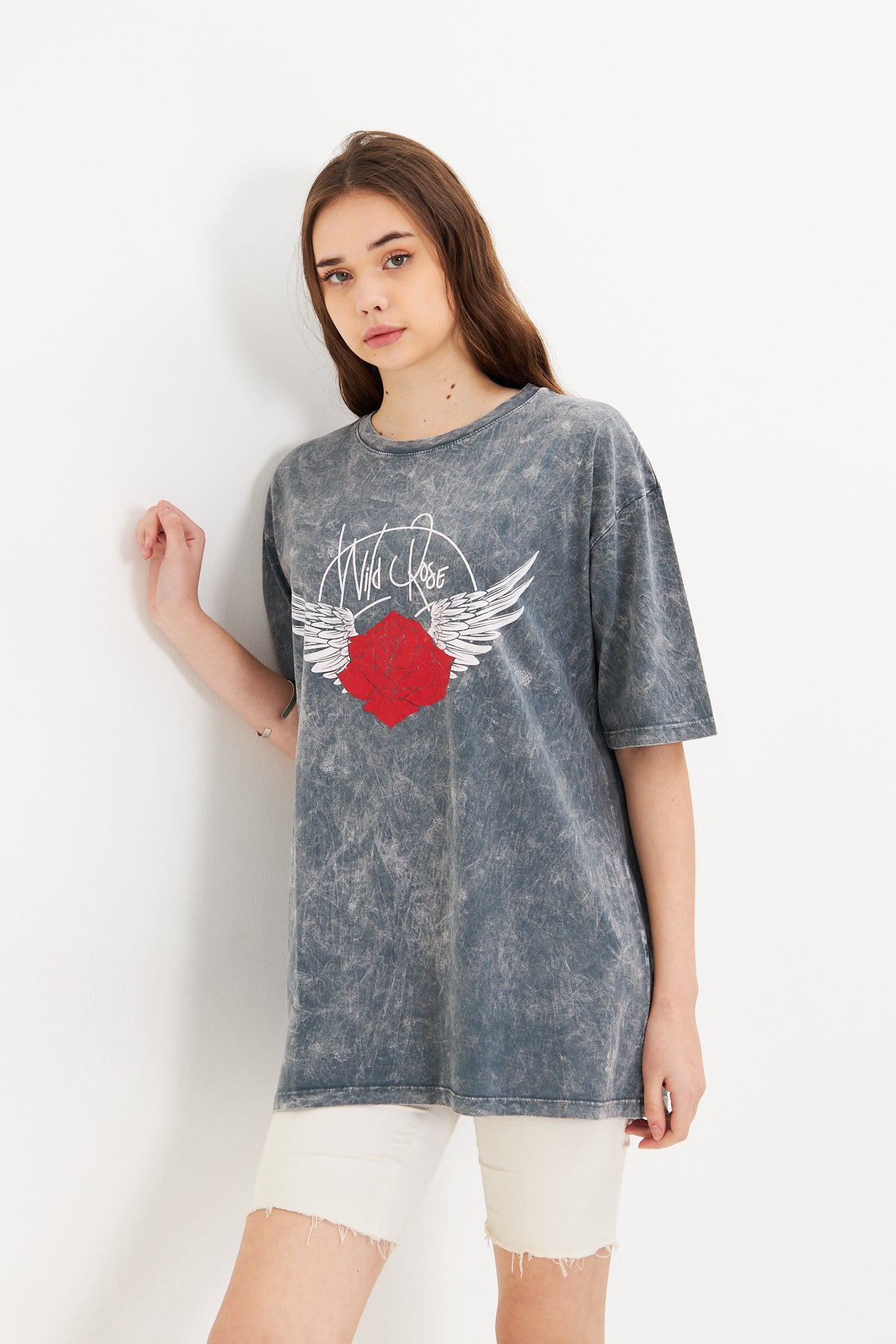 - Günlük stilinize hem rahatlık hem de iddialı bir dokunuş katmak istiyorsanız, bu gri oversize baskılı tişört tam size göre! Yumuşak dokulu %100 pamuk, nefes alabilir bu tişört, oversize kesimi sayesinde gün boyu konfor sunarken, modern ve özgün baskı detayıyla tarzınızı ön plana çıkarır.