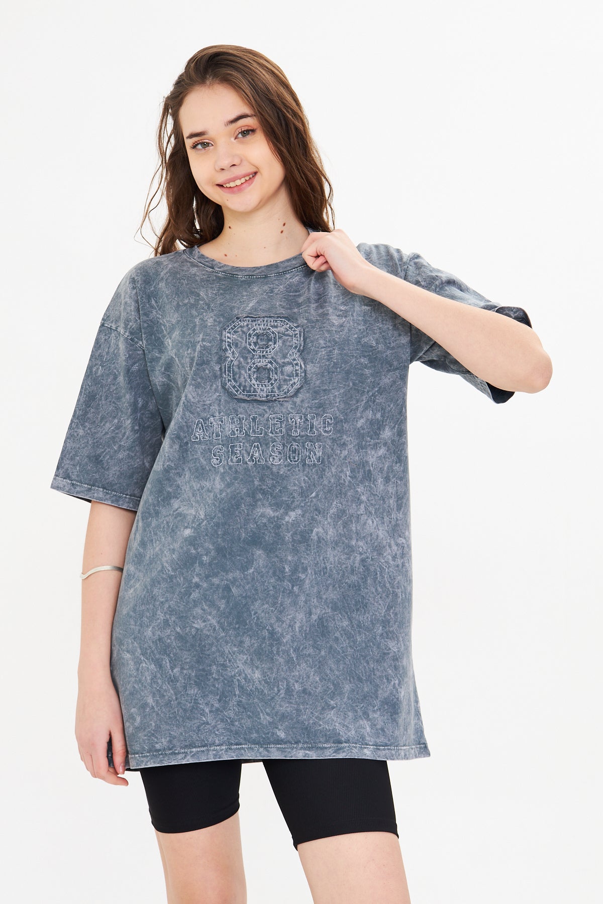 - Modern Sokak Modasının Yıldızı: Taş yıkama efektiyle dikkat çeken bu oversize tişört, sade ama iddialı tarzıyla kombinlerinize özgünlük katıyor.