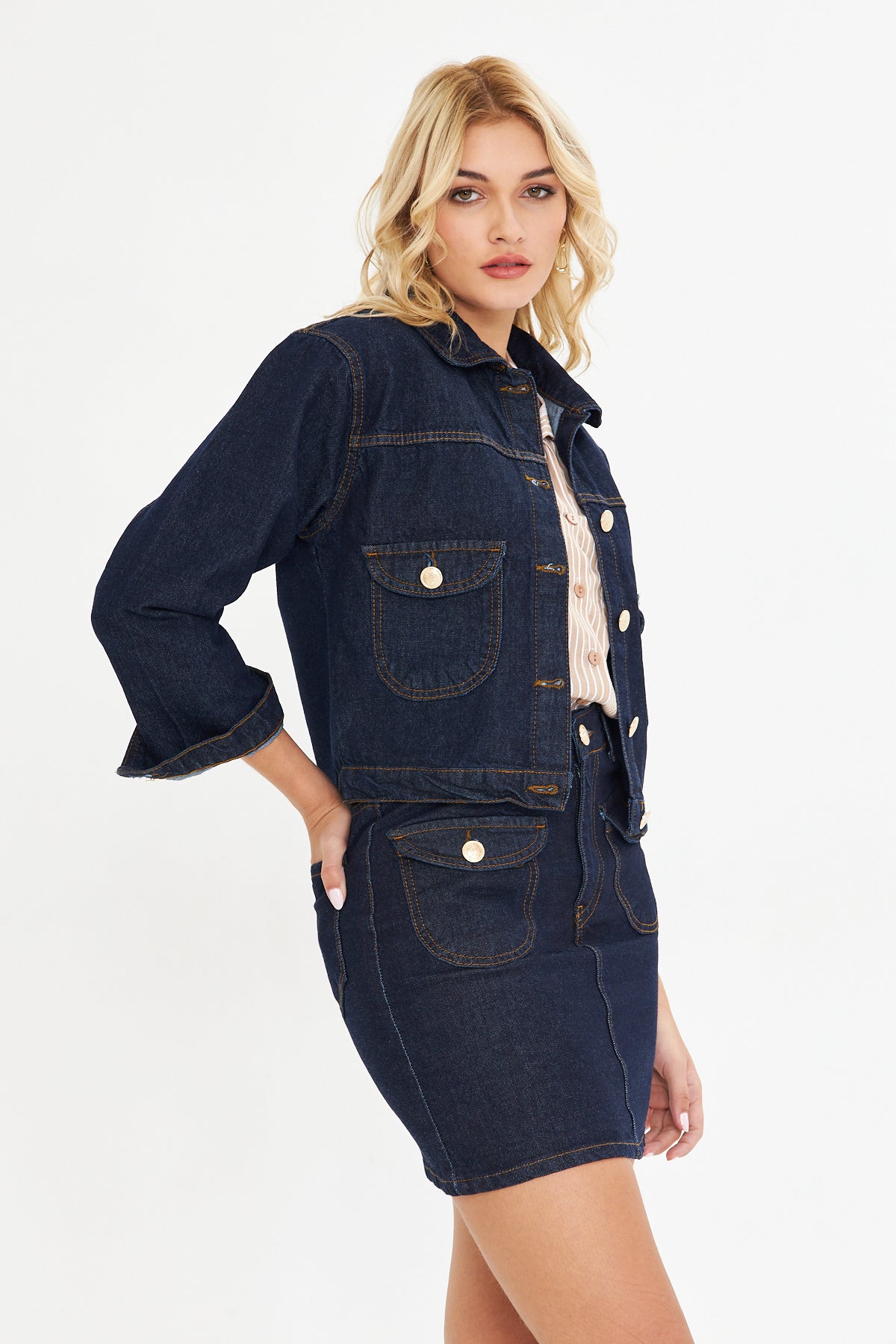 - 🔘 Düğmeli kapanış ile klasik jean ceket tasarımı