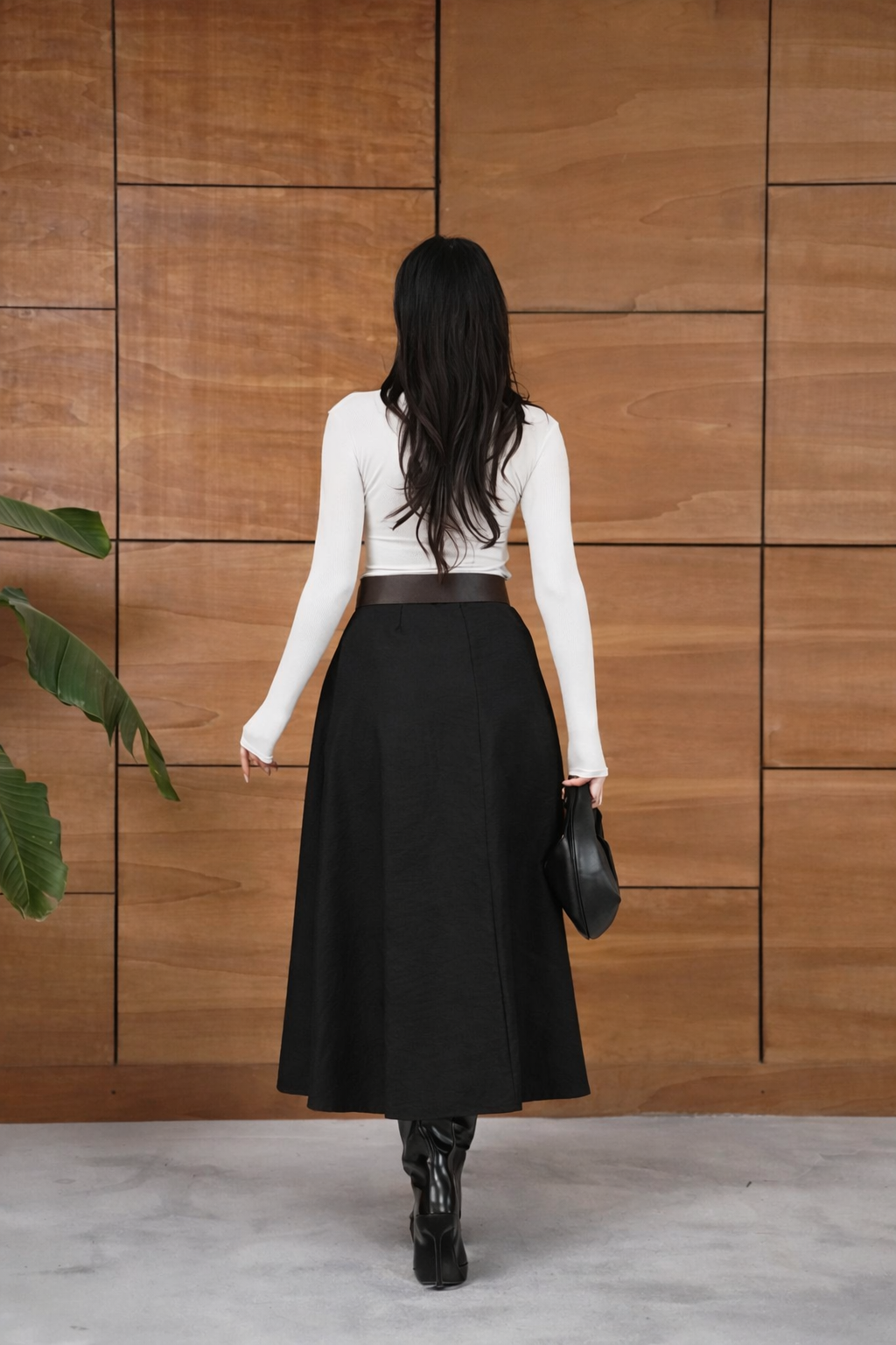 Hem günlük kombinlerde, hem ofis şıklığında, hem de özel davet ve bayram kombinlerinde rahatlıkla tercih edebileceğiniz bu şık midi etek, gardırobunuzun zamansız parçalarından biri olmaya aday.