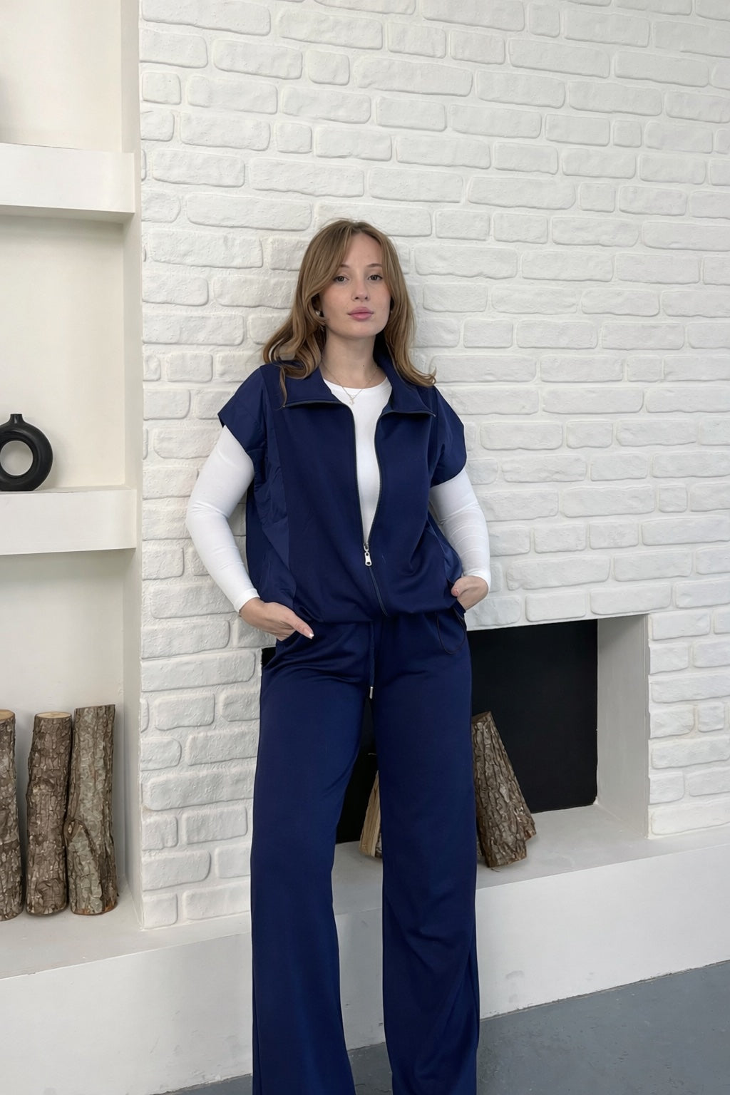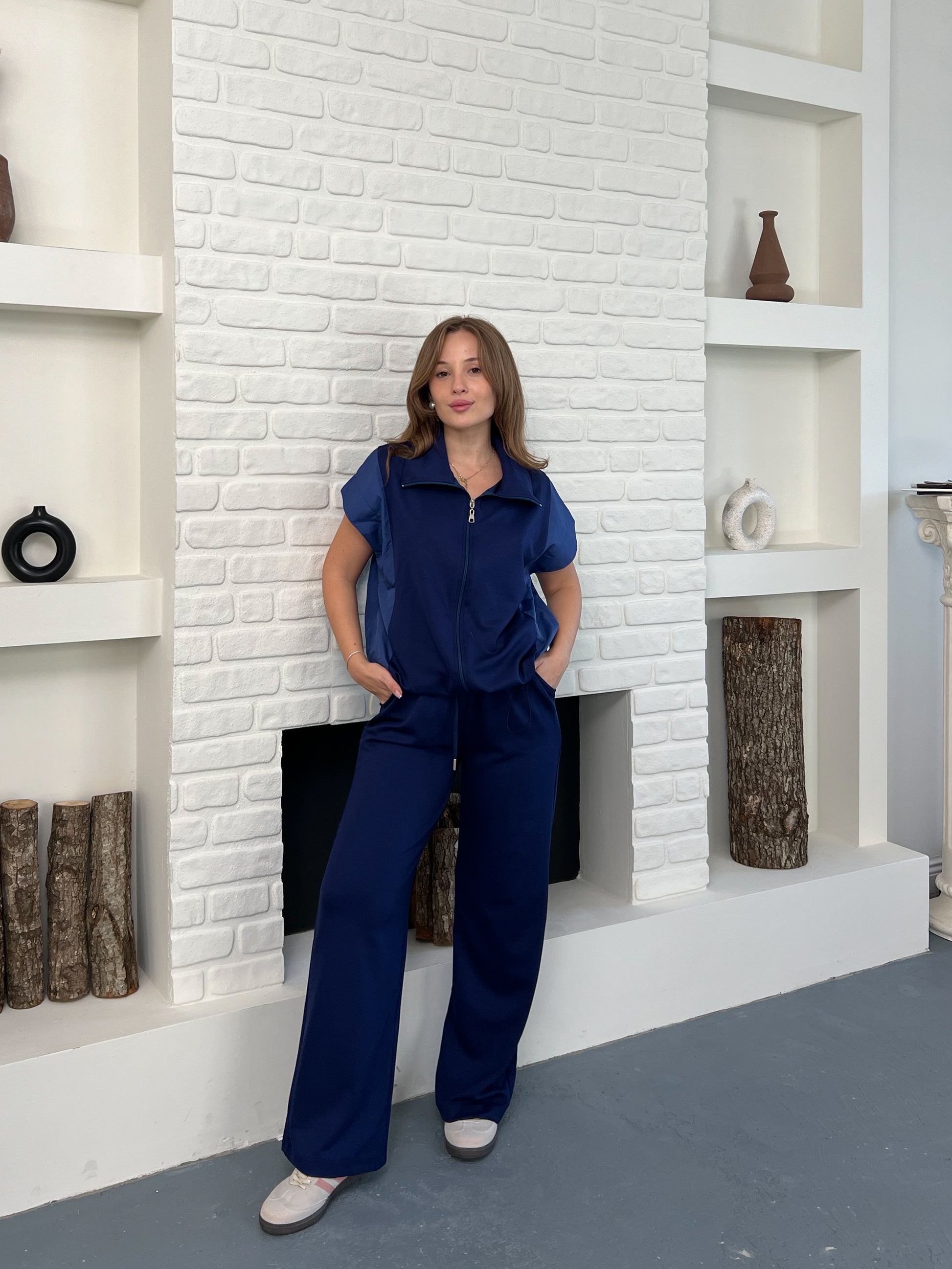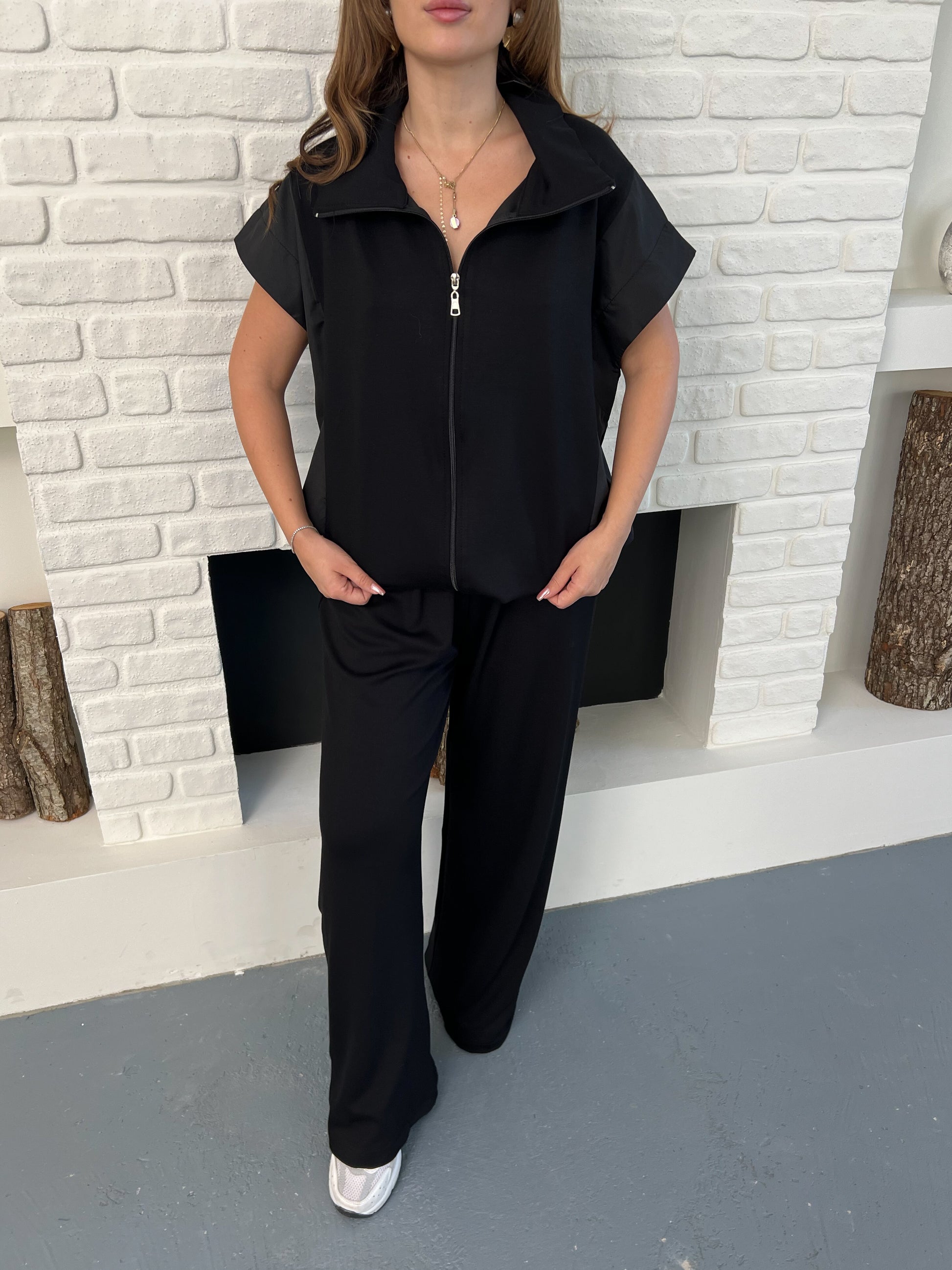 🧥 Fermuarlı kısa kollu üst, paraşüt kumaş yelek detayıyla spor-şık bir görünüm sunar.