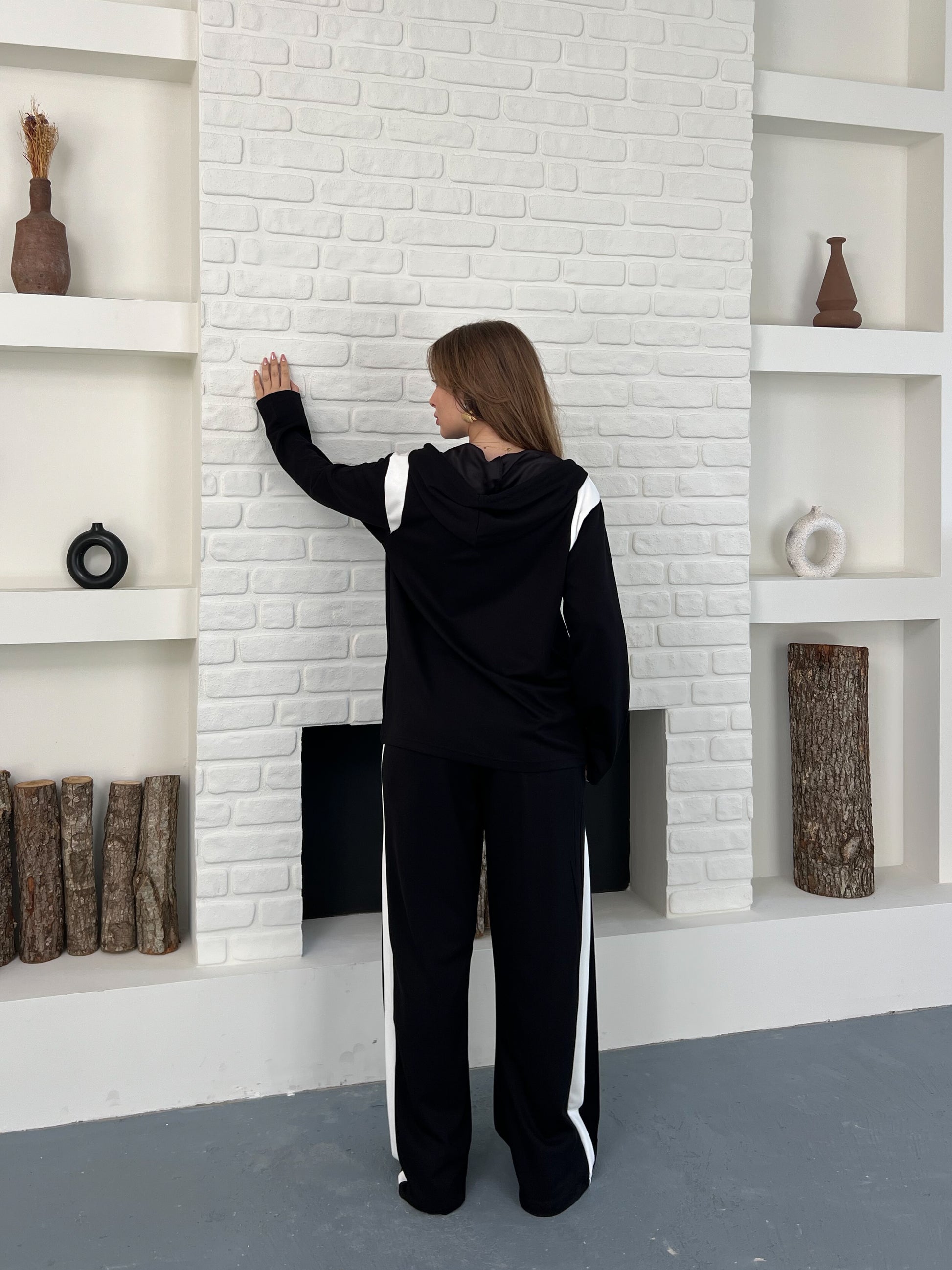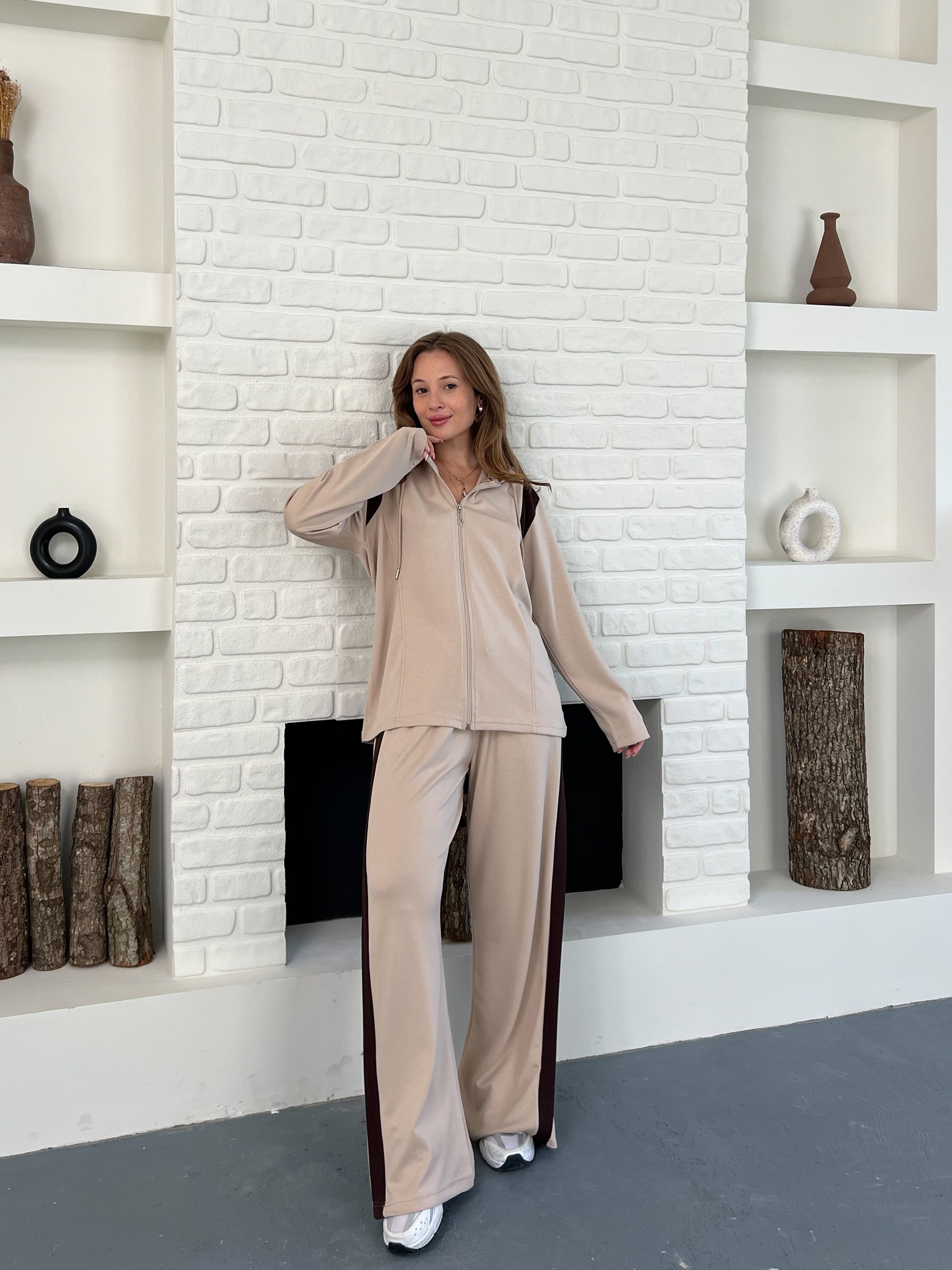 👖 Yan şerit detaylı geniş paça pantolon modern ve şık bir görünüm oluşturur.