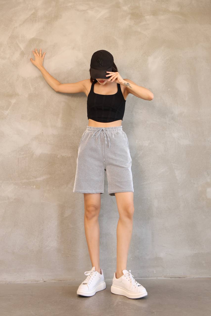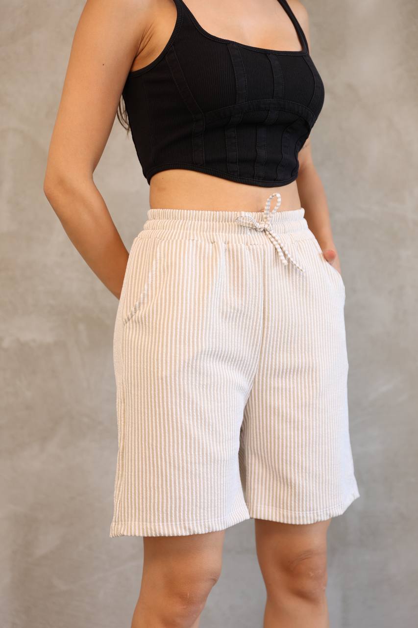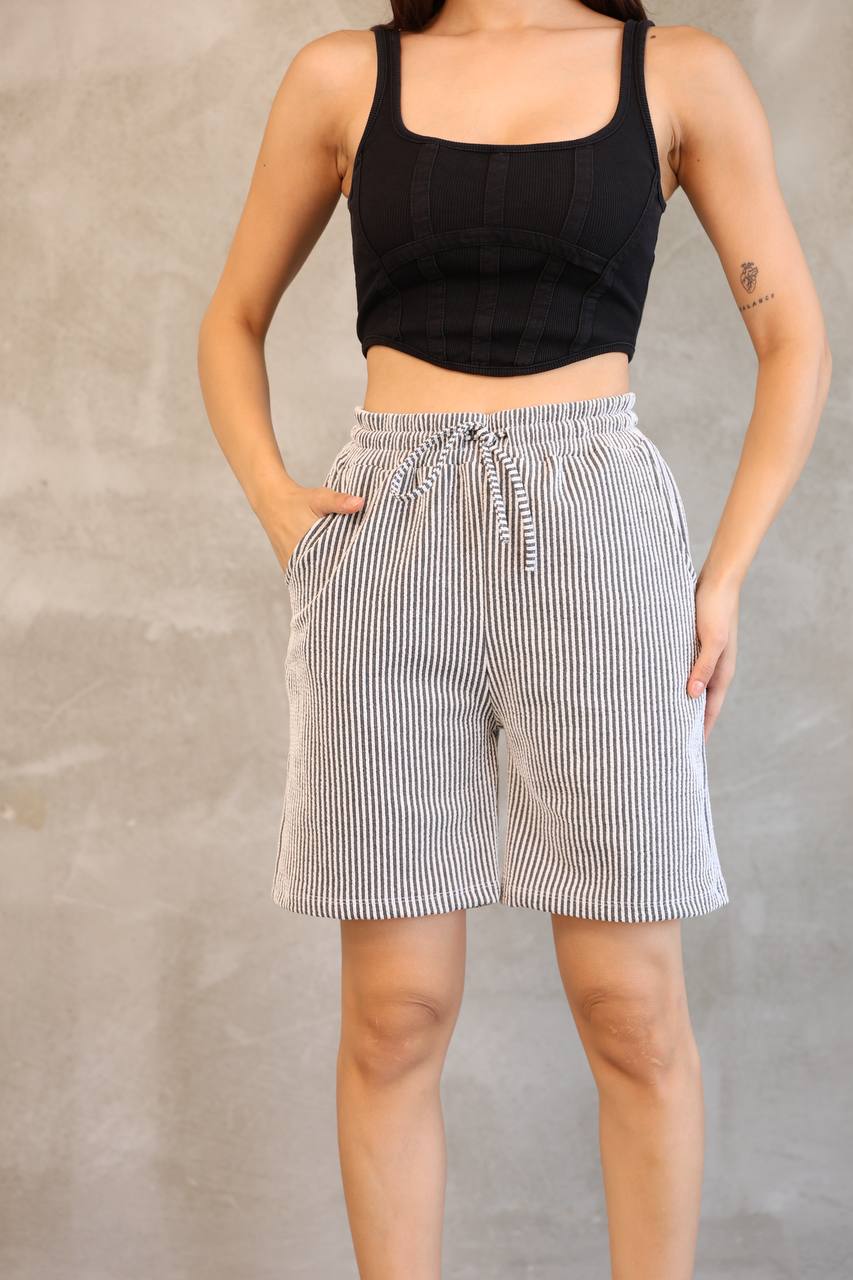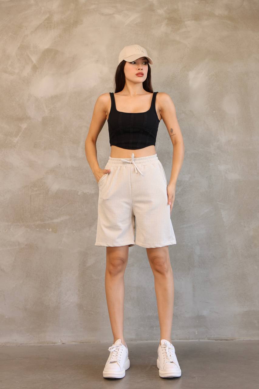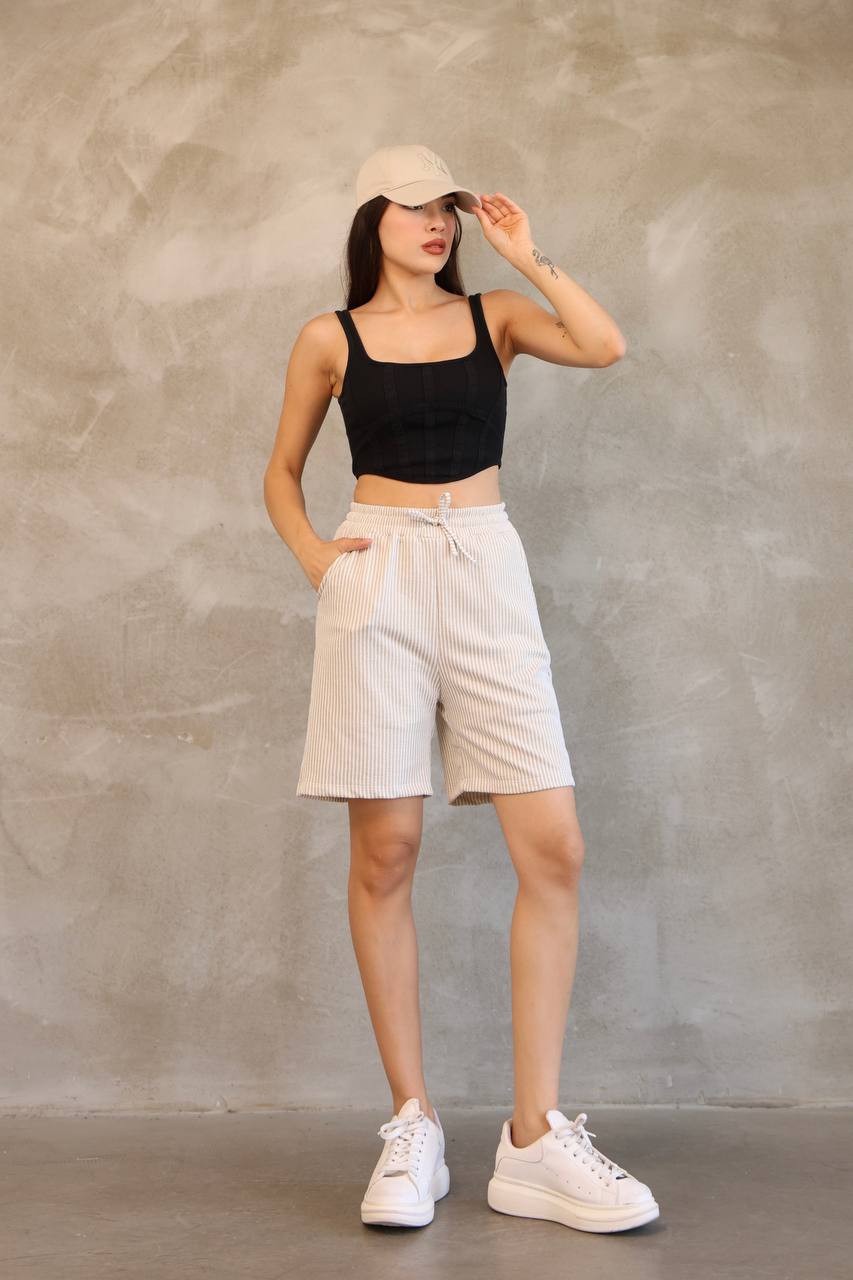 - Su yolu desenli bu şort yaz aylarında hem şıklığı hem de konforu bir arada sunar.