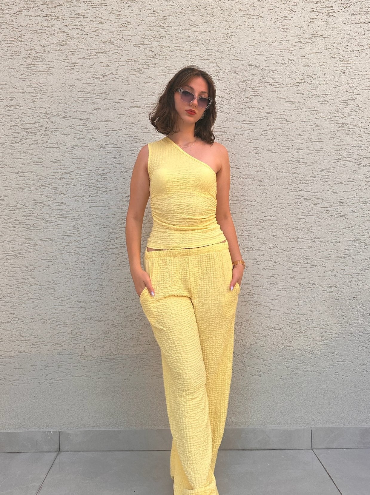 💛Modern çizgileri ve rahatlığı bir araya getiren Sarı Tek Omuz Bürümcük İkili Takım, hafif yapısı ve dökümlü görünümüyle yaz stilinizin favorisi olmaya aday.
