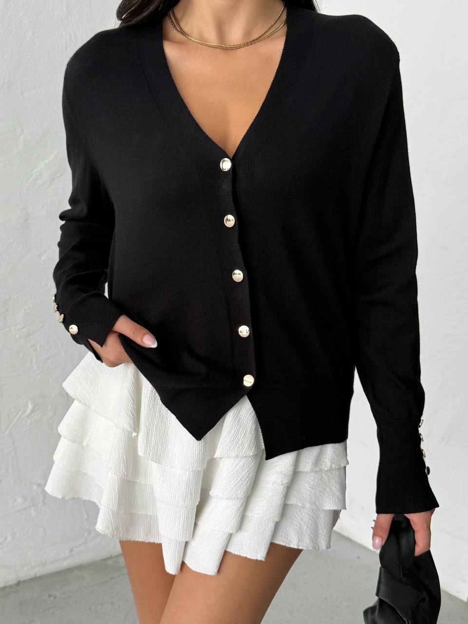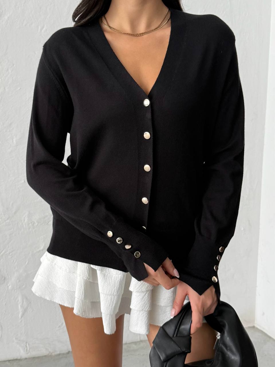 ✨ Altın renk düğme detayları, hem önde hem de kolda zarif bir şıklık kazandırır.